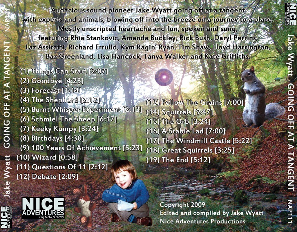 Thanks to all the squirrels and the sheeps and all the marvellous artistes named above and also those wonderfully obliging wits cornered on campus at the University of Glamorgan whose names I didn’t catch and who appear on the album unknowingly but with my permission. A big thank you to Bob Hewett, John Dane, Steve Johnson, Mary Traynor, and all at and around GTFM Radio. Great thanks to Mum and Dad. Thank you and you.