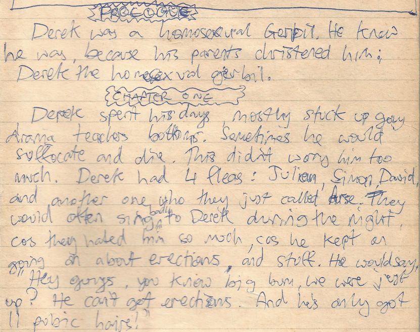 Once upon a time, in the summer of ’93, I lay in the hammock in our garden and penned the meandering foundational chapters of The Nice Adventures of Derek the Homosexual Gerbil.